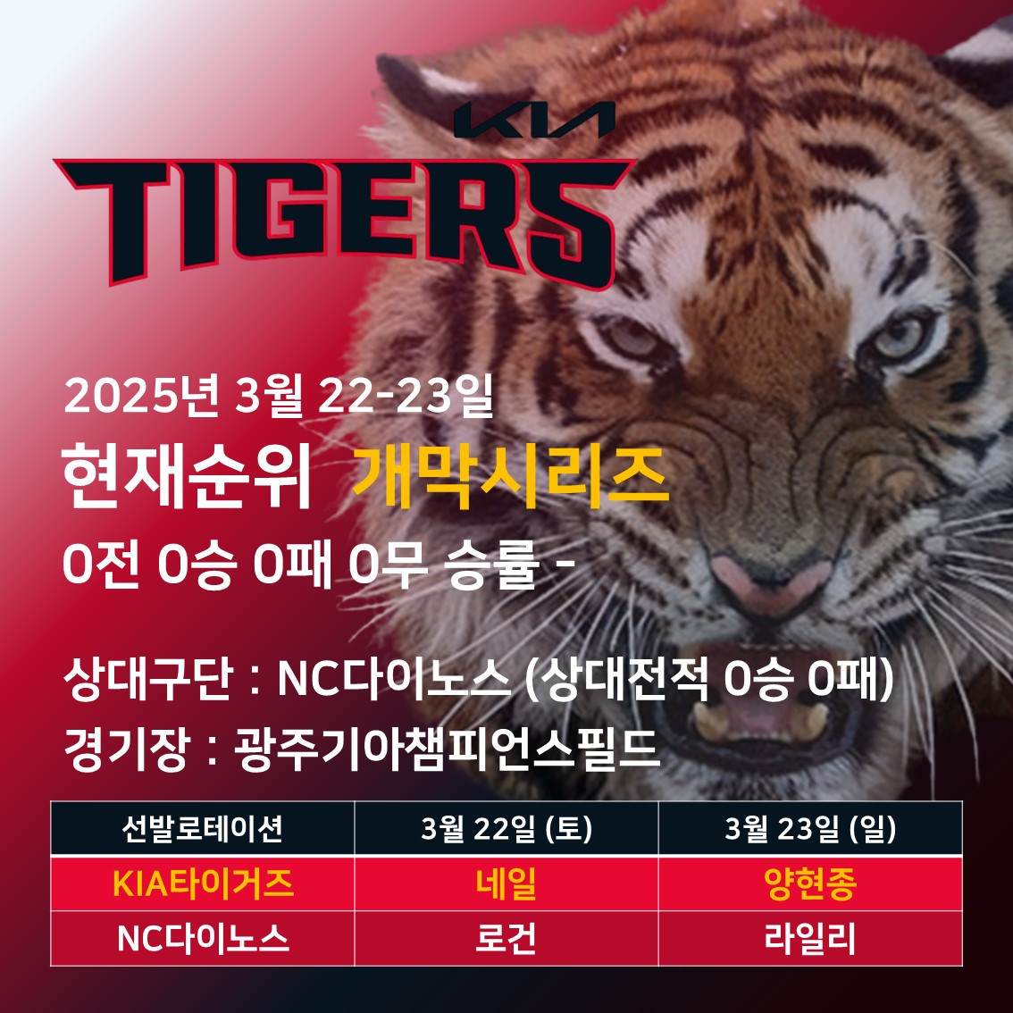 2025년 3월 22-23일 광주챔피언스필드. VS NC다이노스
