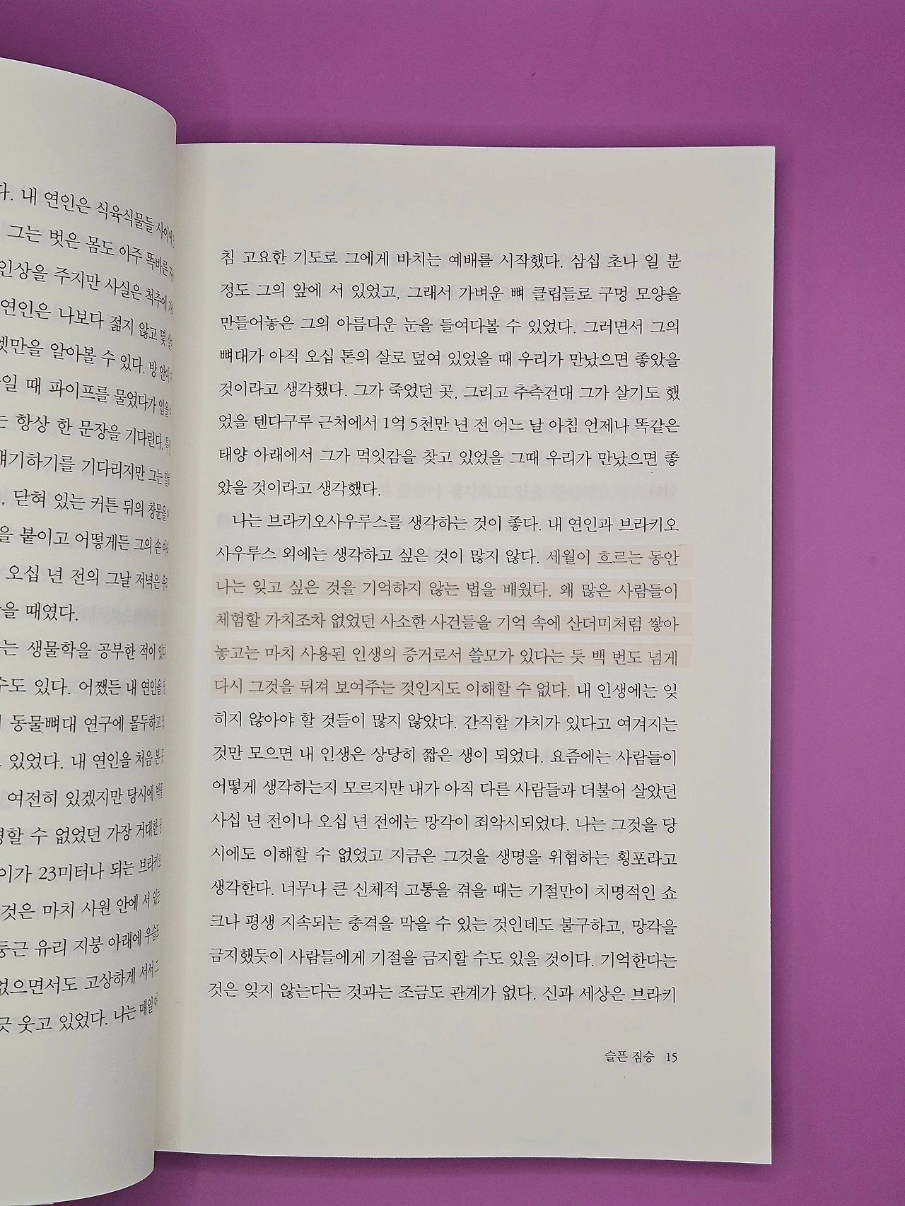 그렇다. 이건 그녀의 사랑이고 그녀의 추억이다. 같은 침대를 쓰고 같은 순간 서로의 몸을 나누며 살을 부벼댔지만 결국 우린 다른 사랑을 한다. 그가 돌아와 같은 사랑이야기를 써도 둘은 다른 이야기를 할 것이다.