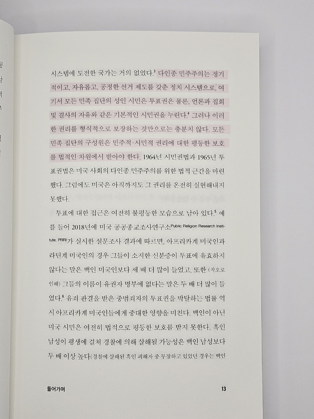 하지만 나는 이 책에 '우리는 여전히 제대로 된 민주주의를 해본 적이 없으며, 계속 불완전한 민주주의만을 맛보다가 이대로 민주주의를 버려버리기에는 민주주의의 이상이 너무 귀하지 않는가' 하는 민주주의자의 호소가 담겨있다고 느껴졌다.