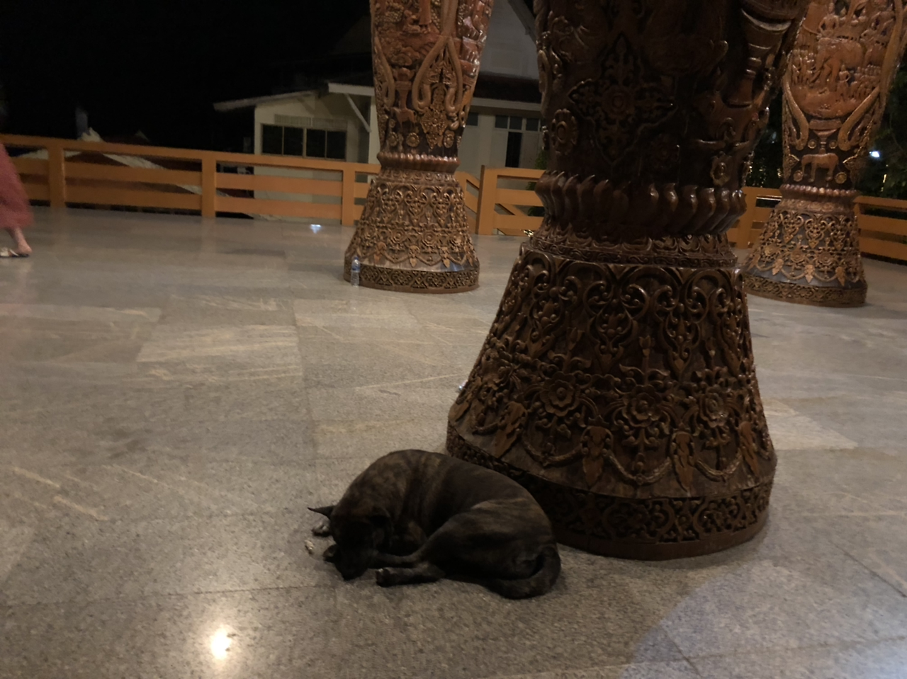 캄캄한 사원에 개들이 참 많다. 치앙마이를 걷다 보면 떠돌이 개들을 많이 보게 된다.