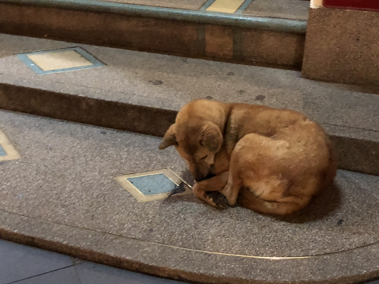 니네들 관광객이구나.. 하는 심드렁한 표정으로 고개를 떨구고 자거나 쉬는데 밤에 적막한 사원에서 마주치는 개들은 약간 무섭다.