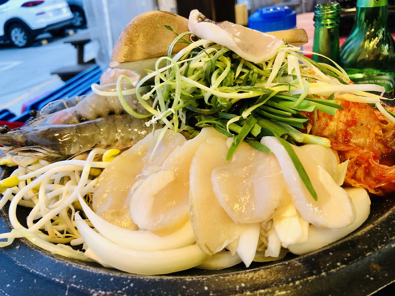 손님이라곤 우리 부부뿐인 식당에서 주문한 해산물 삼합 사진을 찍으니 옆에서 보고 있던 매니저가 자기한테 보내 달라했다.