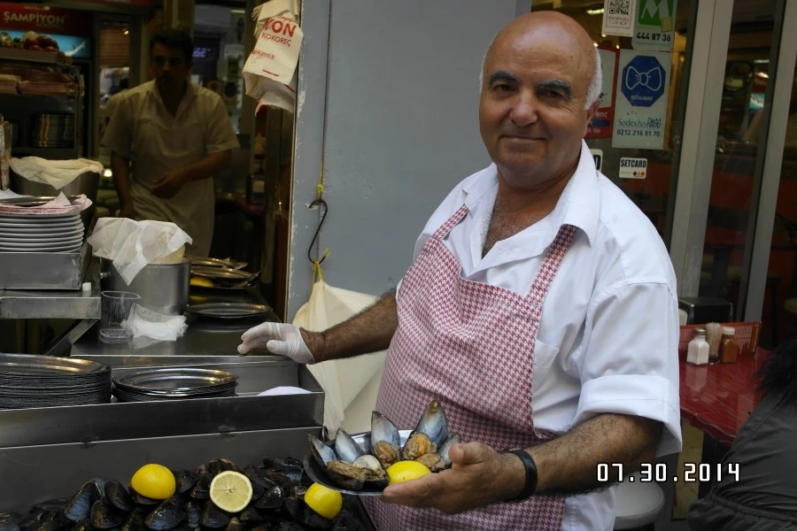 '미디야'라는 홍합밥을 파는 인상 좋은 아저씨.. 사진 찍어도 되냐고 묻자 더 먹음직스럽게 배열하시더니 멋지게 포즈를 취해 주신다. 탁심의 대표 길거리 음식이라는데 이 아저씨 가게만큼 정갈해 보이는 미디야는 없었다.