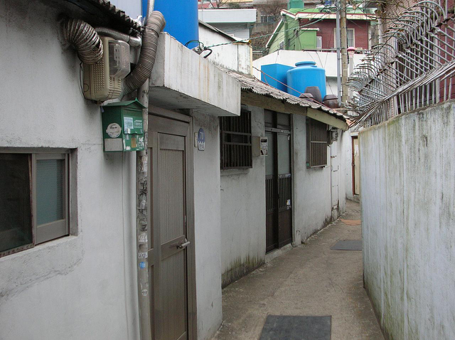 5통 10반의 골목을 따라 뛰어다니는 계집아이가 보인다.
