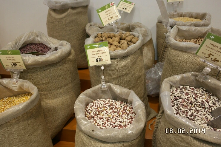 견과류를 특히 좋아하는 죠지아 사람들은 마트에서도 견과류를 자루에 가득 담아 놓고 판다.