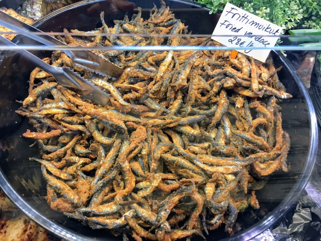마켓 광장은 일명 fish market이라고도 하는데 비린내가 좀 난다. 6시에 파장을 하는데 파장 20분 전에 구운 연어와 청어, 야채들을 접시 한가득 담아 10유로에 주겠다니 입맛 없어도 뭐 어쩌겠나.. 맛있게들 잡솼다.