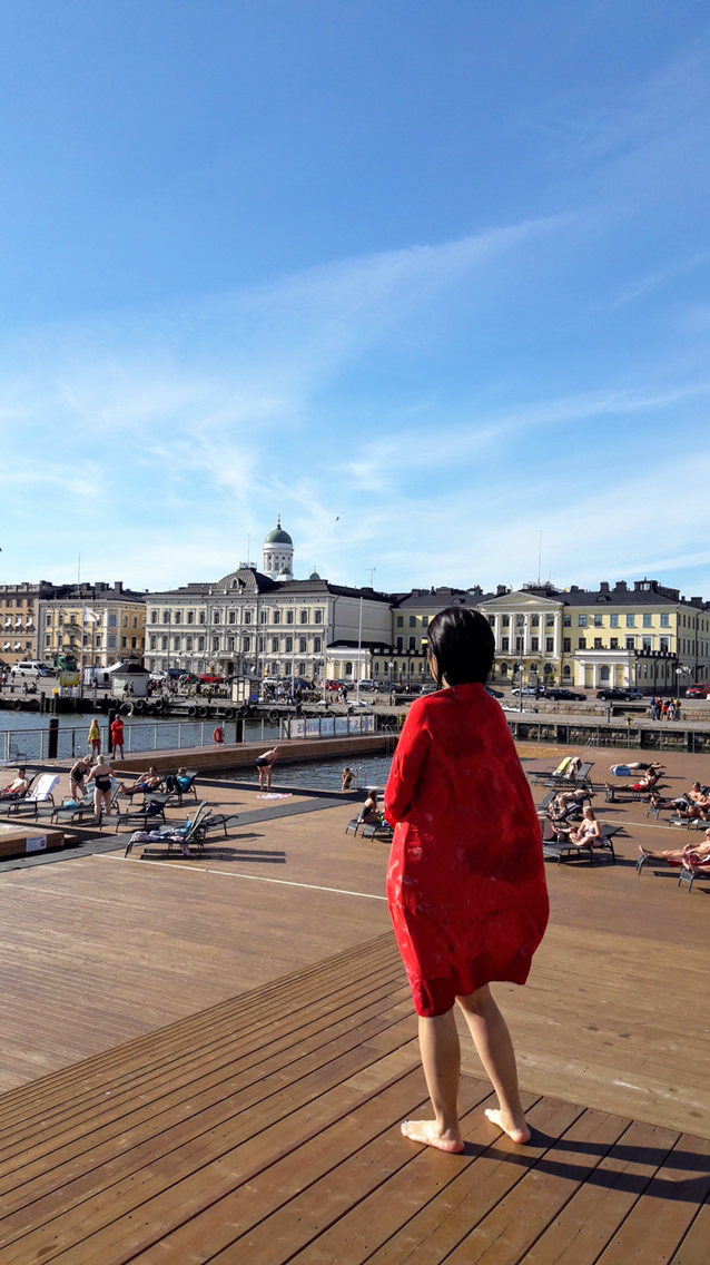 Alla Sea Pool은 최근에 생긴 헬싱키의 아웃도어 풀인데 항구를 떠나고 들어오는 실야 라인과 바이킹 라인 등 큰 배가 수영하고 있는 동안 옆을 지나간다.