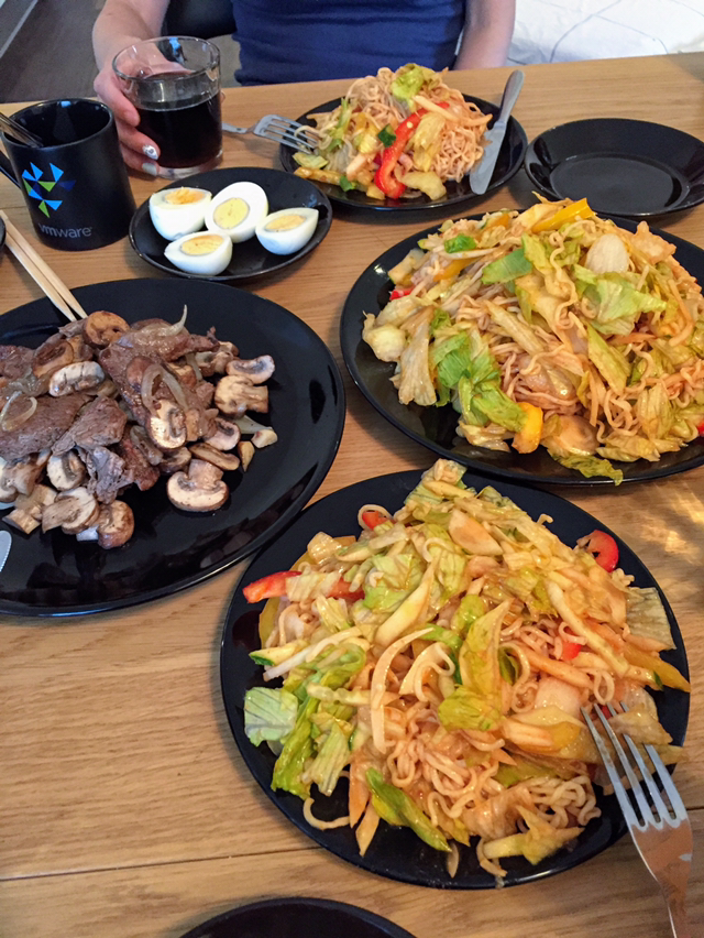 냉장고에 있는 음식들은 3박 4일 동안 먹기에 차고 넘쳤다. 국적불명의 라면사리도 다섯 개나 있어서 다음날 저녁엔 비빔라면까지 야무지게 해 먹었다.