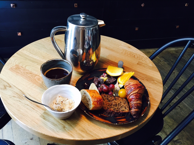 배가 살짝 고파진 우리는 11시30분까지 브렉퍼스트를 한다는 아담한 카페에 들어 갔는데 커피도 주전자 채로 주고, 빵, 요거트, 치즈, 과일 등의 "건강미"에 살짝 감동 먹었다.