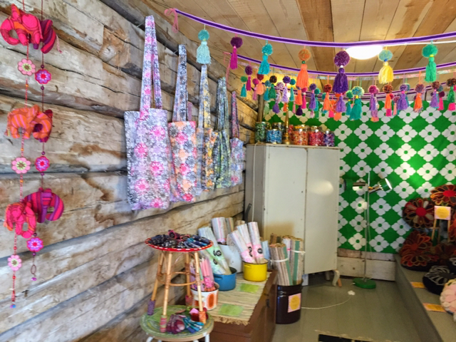 그리곤 멋진 여자가 눈에 띄어 그녀를 따라 갔더니 색색의 레이스 뜨기와 에코백과 천조각들이 많은 가게였다.