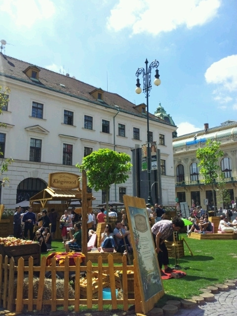 광장 한편에 짚을 깔고 나무상자 몇 개를 의자 삼아 오픈 펍을 열고 있는 이 곳은 'king's wood'라는 나무간판을 걸고 있다.