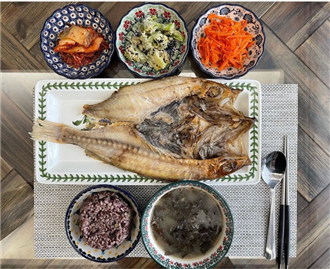 반건조 홍돔찜과 브로콜리 들깨 무침, 당근 라페 같이 몸에 좋을 것 같은 반찬을 놓고 미역국과 함께 먹으니 참으로 온 세상을 얻은 것 같구나!