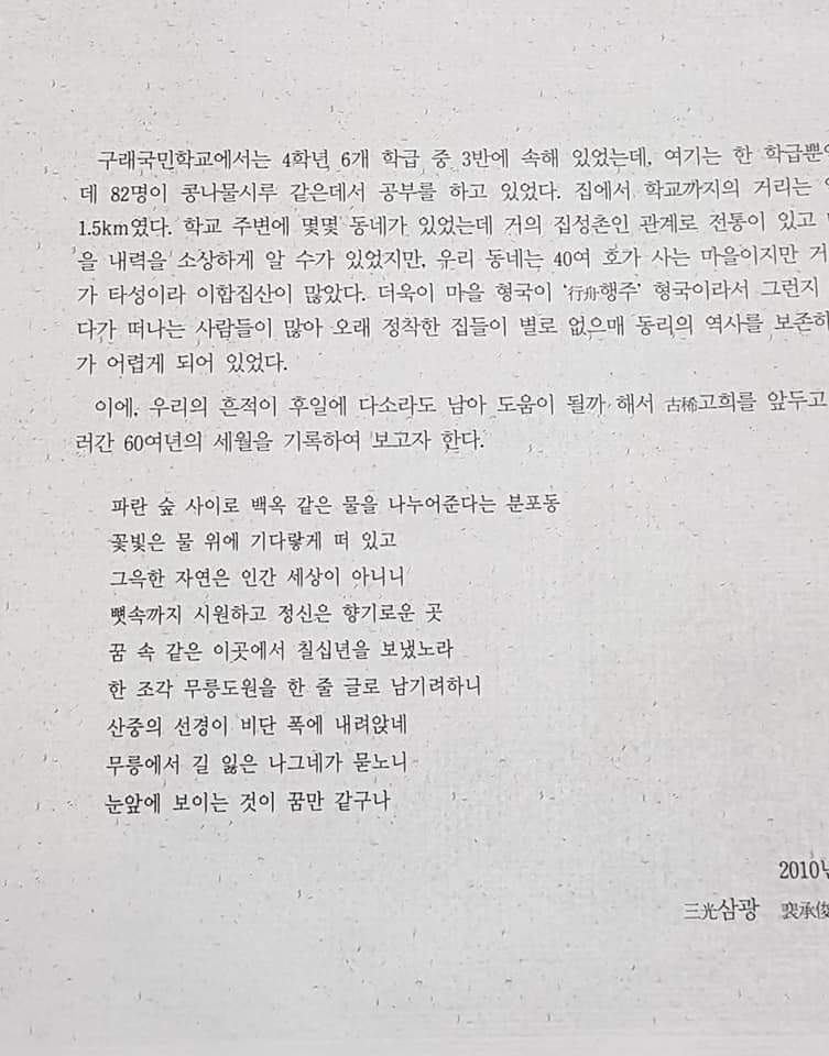 아버님의 호는 삼광이다 아버님의 친구분이 지어주신 이름이라고 들었다. 문자적으로는 세 개의 빛이고 화투의 삼광이 언뜻 떠오르겠지만 아버님의 삶을 반추해보며 나는 아버님이 세 개의 별로 자녀들의 마음에 남을 것이라 생각한다.