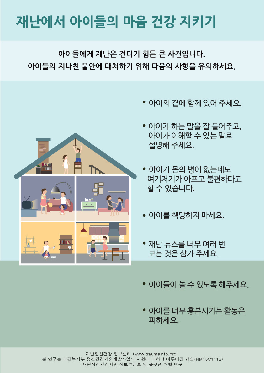 재난정신건강 정보센터 홈페이지의 아동/청소년을 위한 대처 요령: http://www.traumainfo.org/after/03