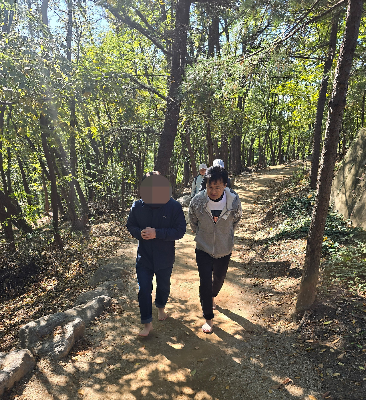 함께 간 암환우분은 맨발 걷기가 처음인, 이른바 맨린이셨다. 연신 좋다시며 꾸준히 걸으셨다.