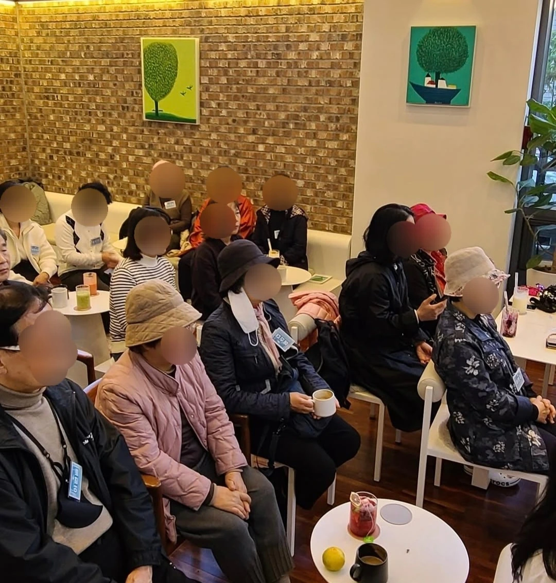 원장님과 환자분들이 맨발 걷기 후, 근처 카페에서 잠시 몸을 녹였다. 겨울철 맨발 걷기는 내게 두 번째 있는 일이었다. 발끝은 시렸지만 마음은 따뜻했다. 수요일은 원장님의 휴진이었는데 한 달에 한 번, 이렇게 시간을 내어 환자들과 직접 걸음을 나누시는 모습에 깊은 존경을 느꼈다. 환자들의 몸과 즐거움까지 돌보려는 태도는 흔치 않은 일이었다.