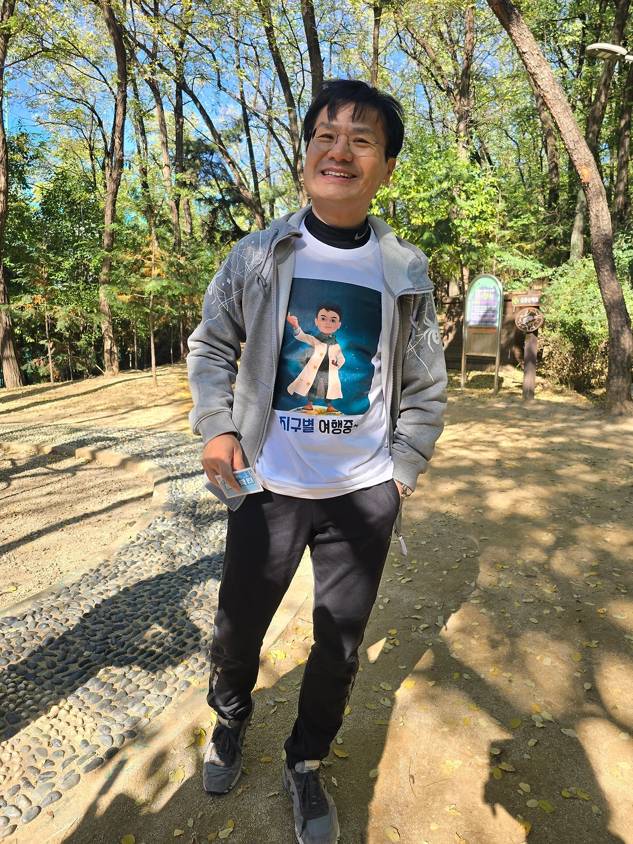 "지구별 여행 중"이라고 적힌 티셔츠가 너무 귀여워서 그냥 지나칠 수 없다며 사진을 찍었다. 그 문구처럼 우리 모두는 잠시 머무는 여행자일지도 모르겠다는 생각이 들었다. 병원에서 보낸 지난 1년, 나는 그런 여행 중에도 뜻밖의 아다리가 맞아 5~6번 정도 이런 자리에 함께할 수 있었다.