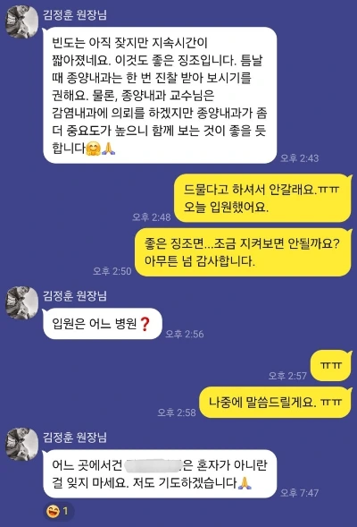 고통은 말로 전달되지 않았고 열이 나면 해열제를 써야 하는데 듣지 않는다부터 시작해 무엇을 어떻게 아픈지도 버거워 병명과 증상, 치료 경과를 적은 자료를 건넸다.