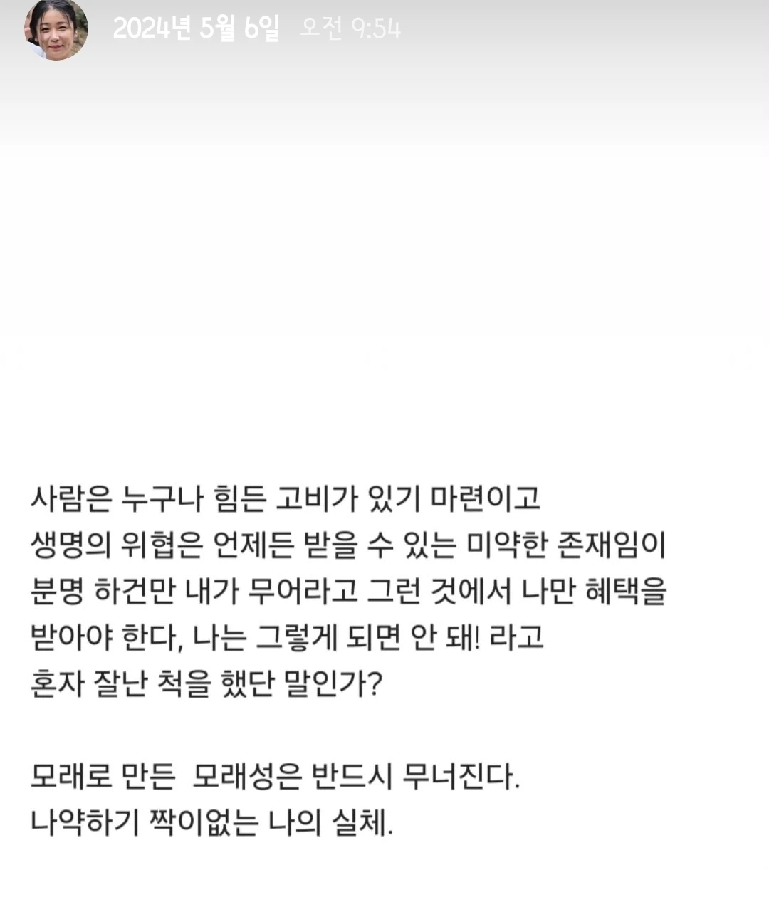 가슴속에 남아 있던 억울함, 설명되지 않는 무기력은 끝내 자리를 뜨지 않았다.