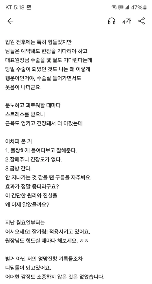 그리고 내가 지금 지구에서 가장 행복한 환자라는 것도.