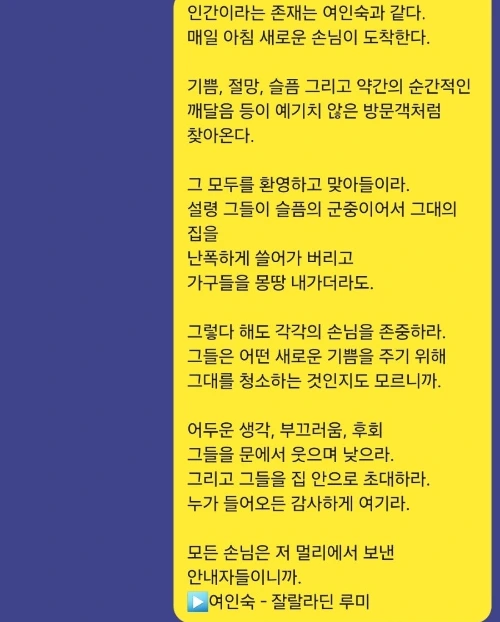 고통이나 어려움이 찾아올 때는 상황을 억지로 바꾸려 하지 말고 지나가기를 기다리는 것.