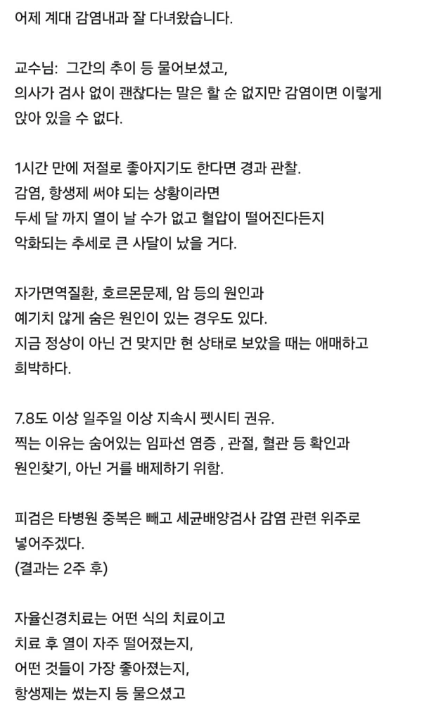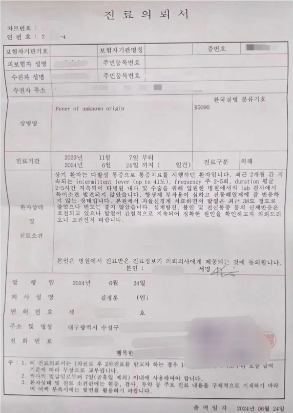 주치의 선생님은 내 발열에 대해 좀 더 정밀한 진단이 필요하다고 생각하시어 진료를 의뢰해 주셨던 것.