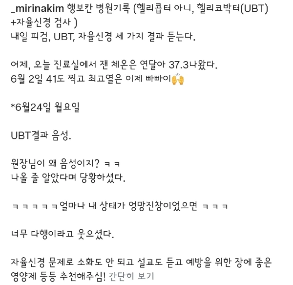 나에게 나와도 이상하지 않는데 음성이라는 결과에 안도의 한숨을 내쉬셨지만 그 눈빛엔 풀리지 않는 의문이 남아 있었다. 사람의 몸이라는 게 이렇게까지 신비롭다.