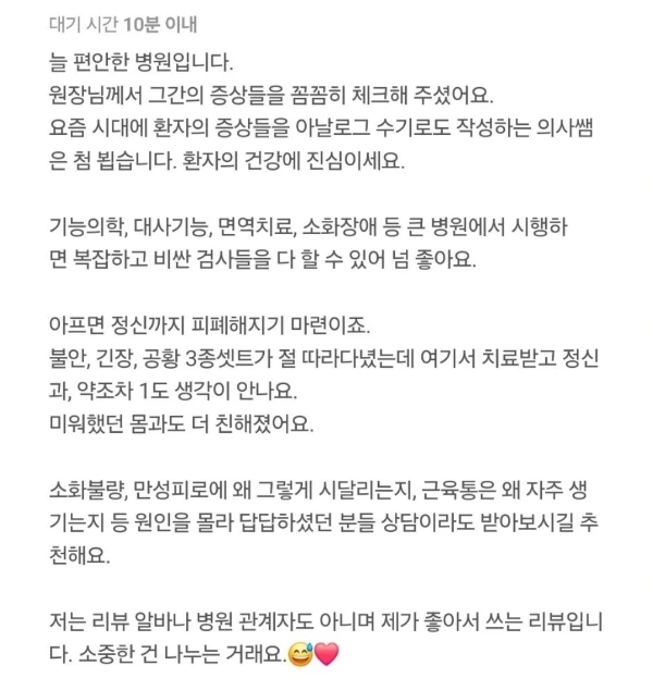 내가 지금까지 받아온 진료 태도, 그리고 그 모든 것을 통해 느낀 진심이었다.