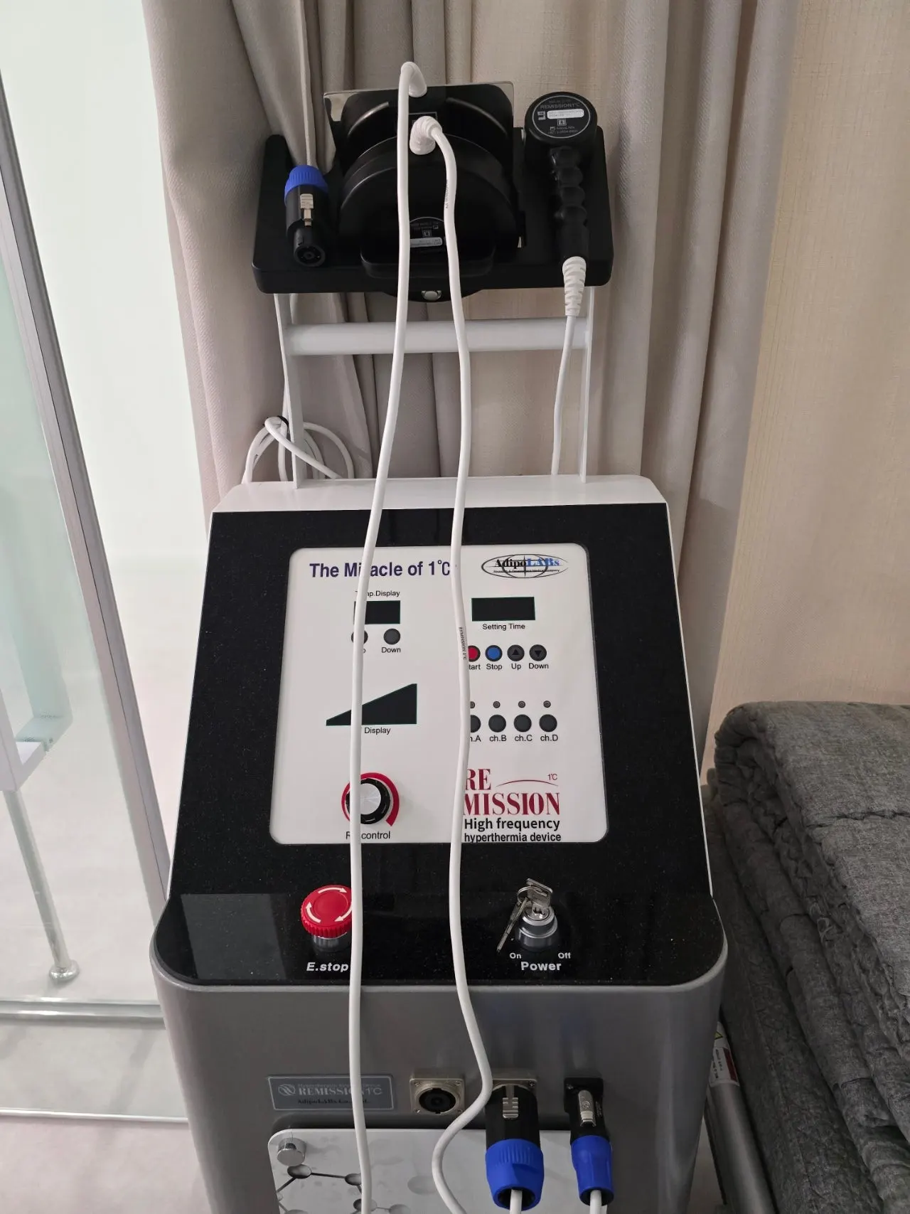 오히려 마사지를 받는 듯한 편안한 열이 몸 안으로 번져왔다. 열의 강도는 조절할 수 있는데 나는 38도에서 41도까지 올랐다. (얼마 전 궁금해서 만나는 암환우분들께 여쭤보니 대부분 38~39도 정도라고 했다.)