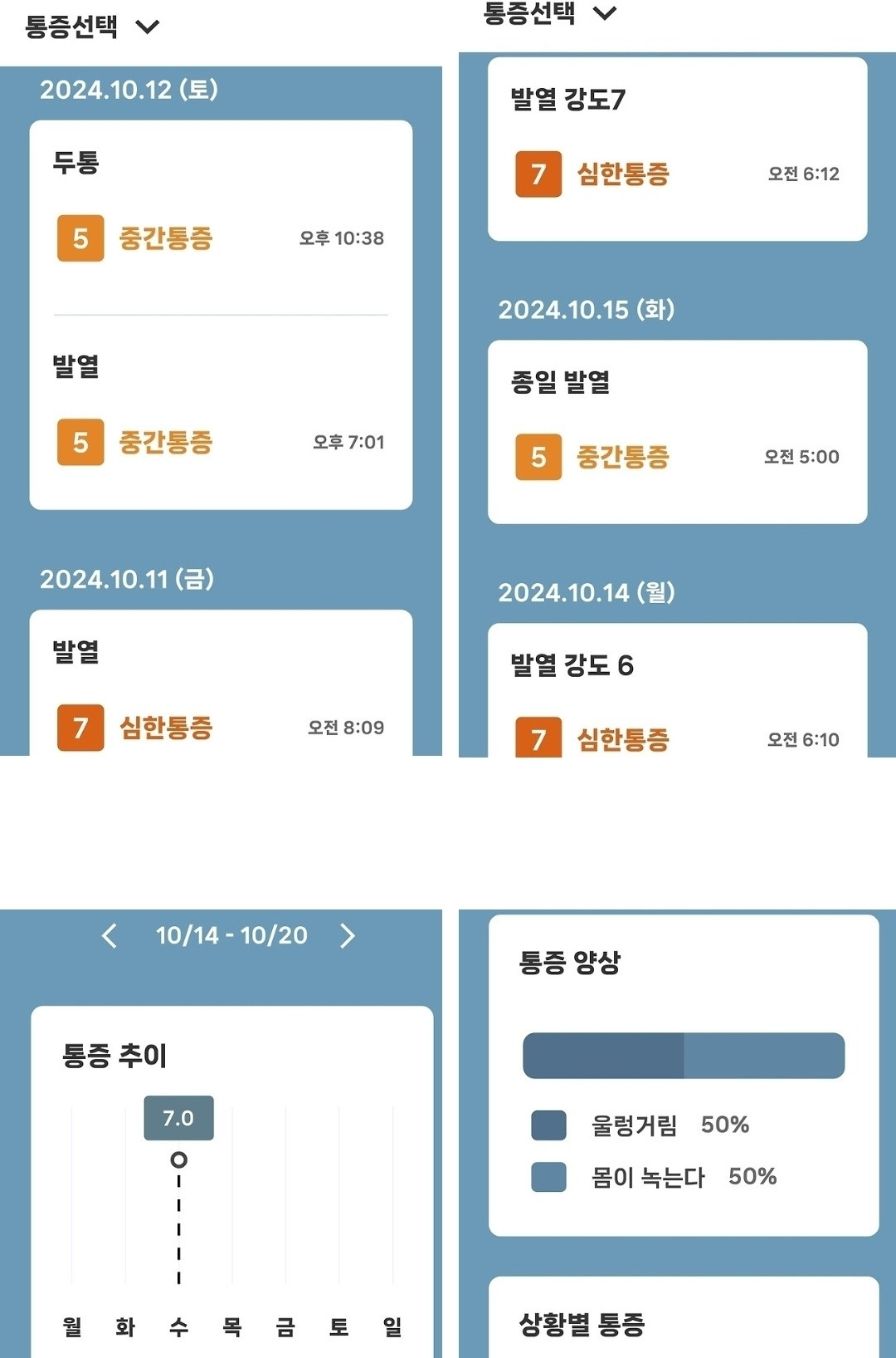 발열은 6개월째 이어지고 있었다. 도저히 노트에 끄적이기 힘든 날도 있었지만 그럴 때마다 통증 기록 어플을 보며 만든 분께 감사한 마음이 들었다..