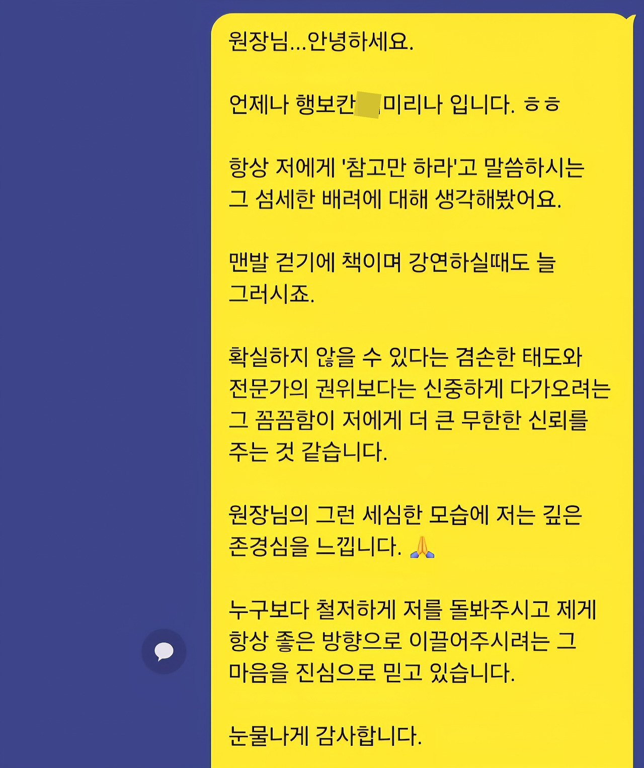 2024년 10월 6일 일요일, 원장님께 장문의 톡이 왔다.