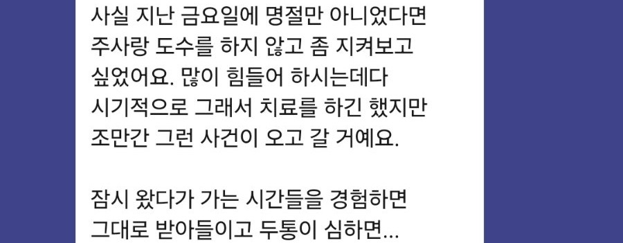 치료가 늘 드라마처럼 기대에 부응하지는 않았지만 나는 그 마음을 받았고 의사의 진심과 노력을 헛되게 하고 싶지 않았다.