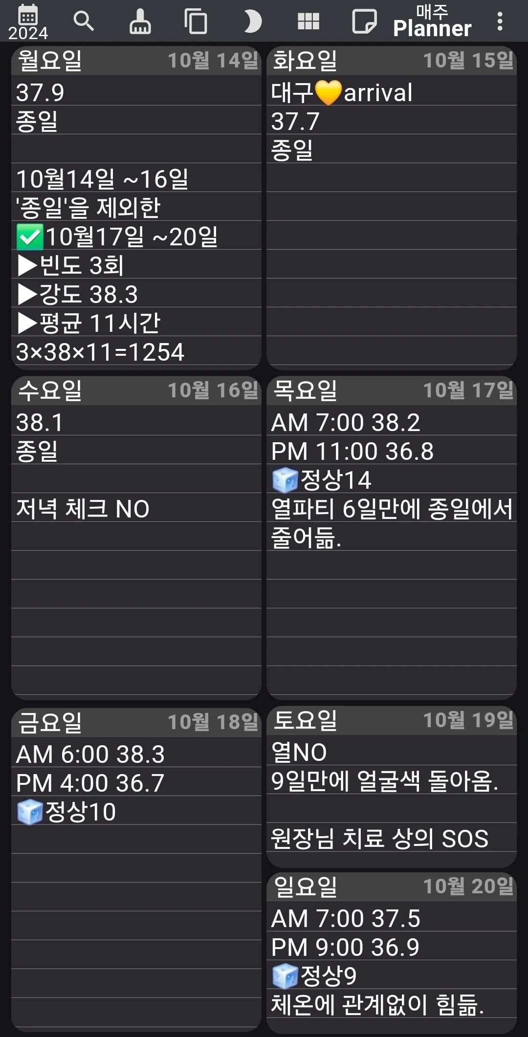 원장님은 대부분 증상에 대해 물어보셨지만 기억이 나지 않을 때면 내가 기록한 앱 화면을 보여드리거나 보내드리곤 했다.
