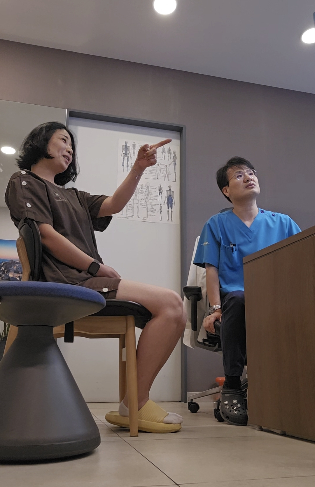 평소에도 어깨와 목 스트레칭을 하시는 걸 봤지만 이날은 목소리가 쉬어 있었고 팔에는 주사 밴드가 붙어 있었다. "원장님은 오늘 왜 이렇게 피곤해 보이세요? 수액 맞으셔야겠어요!"^^
