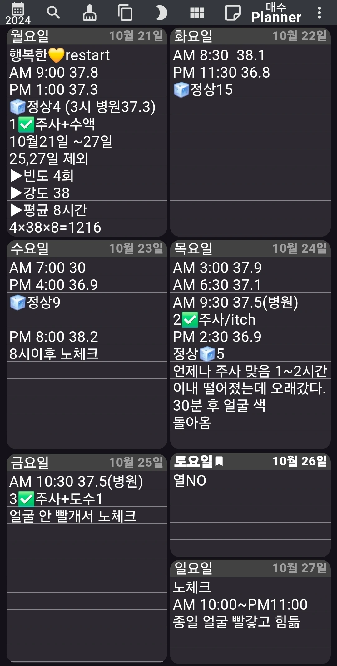 매일 체온을 재고, 숫자를 적고, 상태를 덧붙였다.