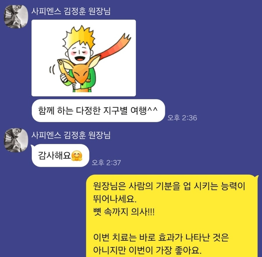 “너무 배려해 주시고 신경 써주셔서... 원장님 때문에 다른 의사 선생님은 못 만날 것 같아요.”