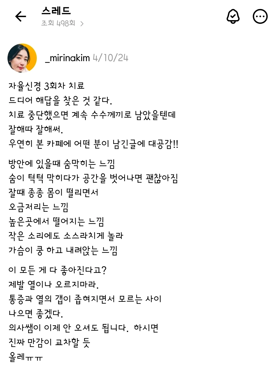 2024년 12월의 나는 그해 4월로 자주 돌아가곤 했다. 자율신경 치료를 시작하던 바로 그날이었다.