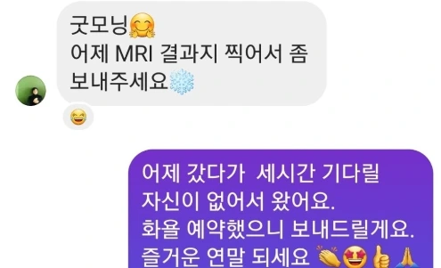 증상은 행보칸에 말 안 했다. 꼬리뼈 자지러지게 아프고 등은 괜찮았다. 고관절도 빠이! 엑스레이만으로는 젊은 사람들 디스크 상태를 정확히 확인하기 어렵고 2,3,4,5번 디스크가 좋진 않지만 통증이 등까지 내려가진 않는다고 MRI 찍으러 가볍게 다녀오라셨다.