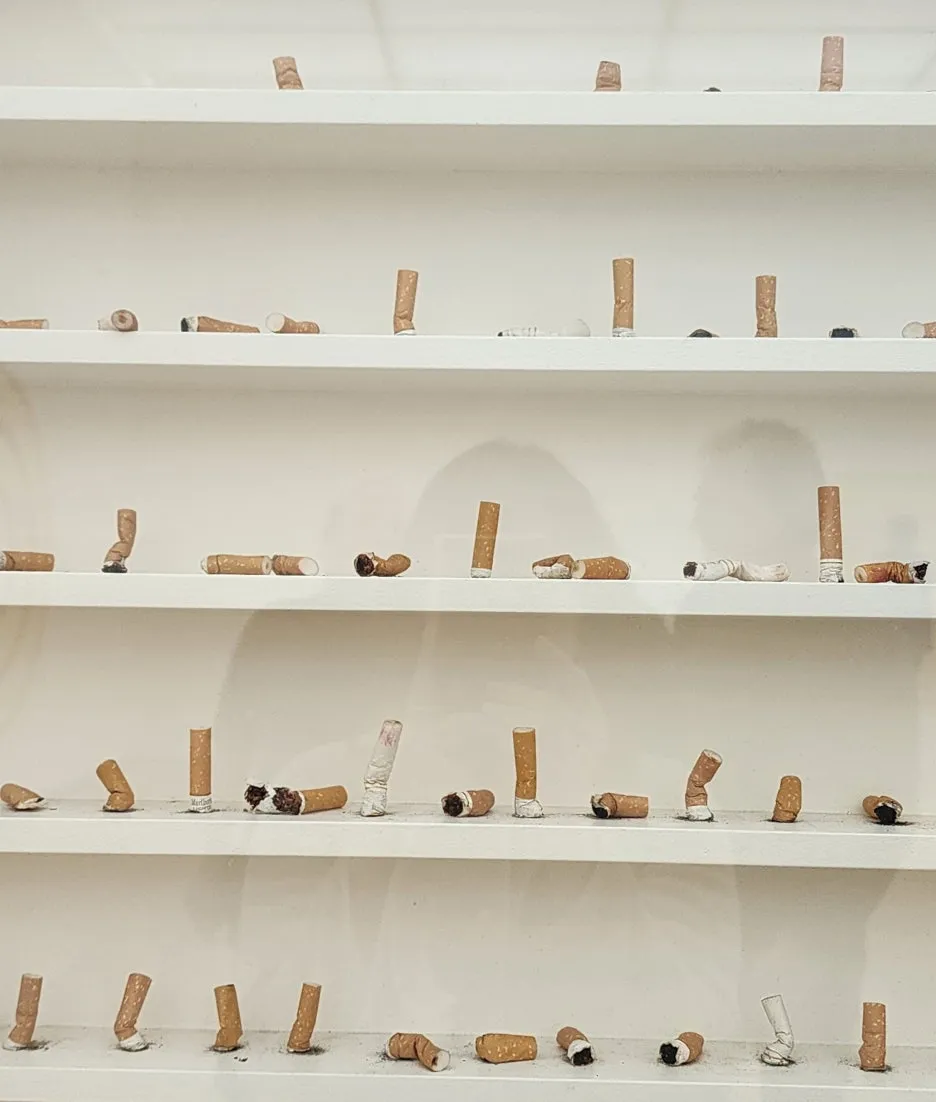 데미안 허스트의 색색의 알약 작품이 떠오르는 하나도 같지 않은 무수한 담배꽁초.