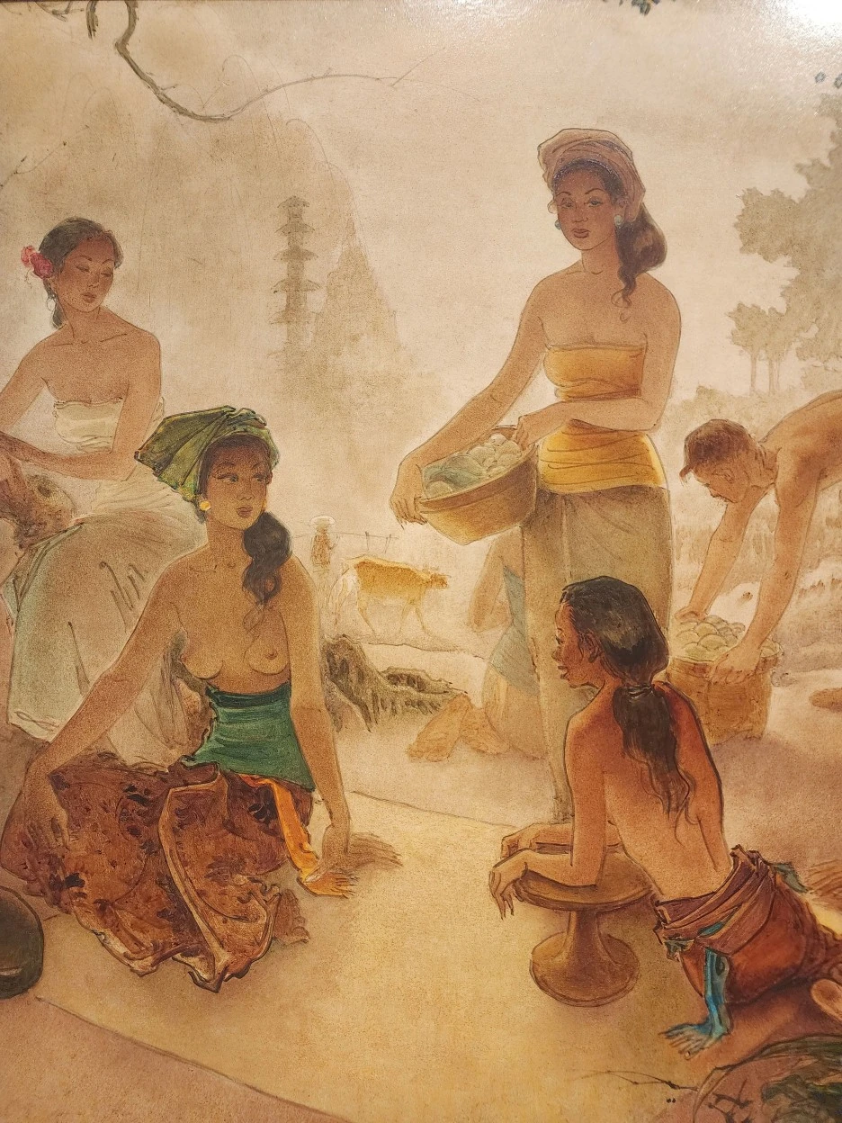 원시성이 잘 드러난 그림일까.. 라고 생각하다 지금도 발리섬의 어느 외진 곳은 이런 삶의 모습으로 살고 있을 듯해 생각을 접었다.