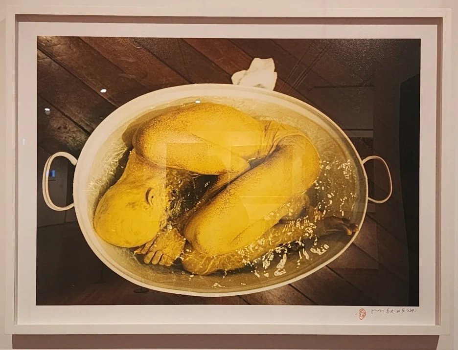 사람을 노란색으로 칠해 두어 슬쩍 보면 냄비속에 요리되어 져 가는 치킨의 모습인데 사람이라는 것을 알고 나면 동공이 커진다. 이런 행위예술을 보다 보면 이해하기 어렵지만 계속 보려고 노력중이다.