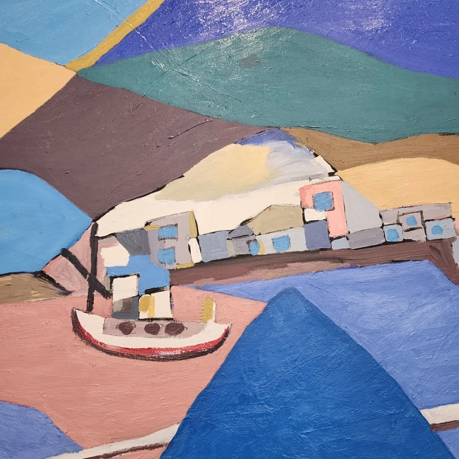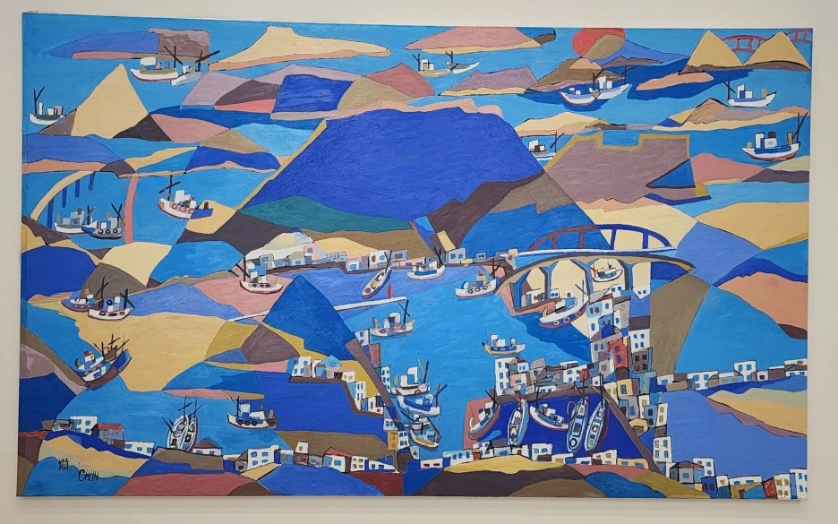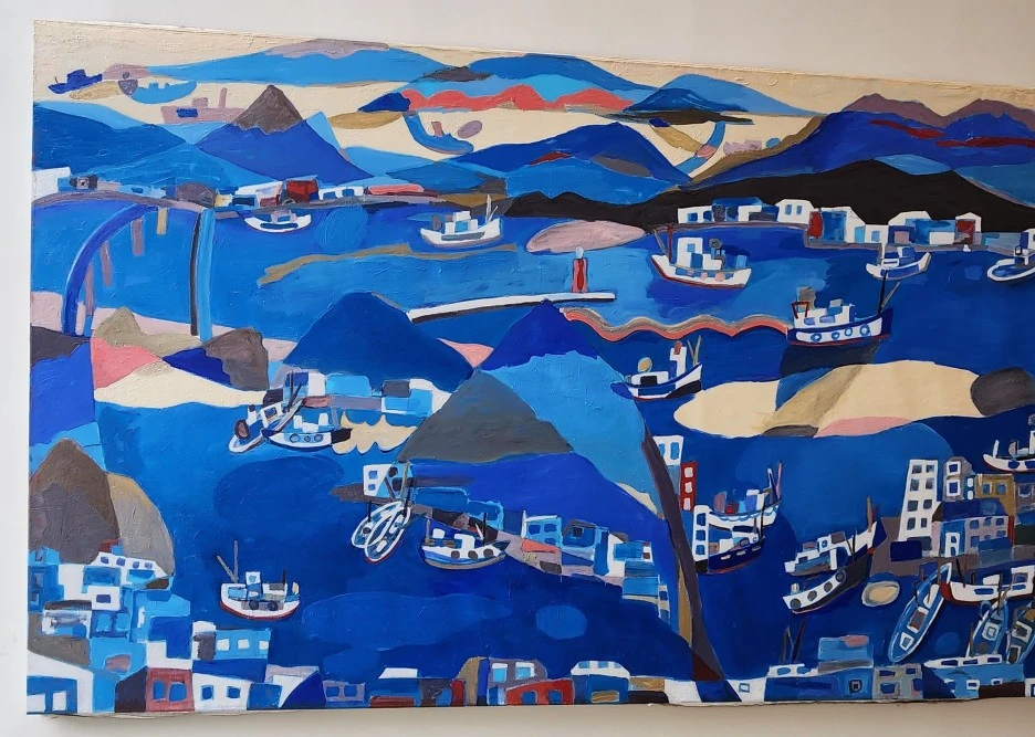 사람은 한명도 그려넣지 않았는데 그림 속에서 시끌벅적 와글와글 부둣가 사람들의 삶의 소리가 들렸다. 특히 가운데 옹기종기 모여있는 고깃배들에서는 그랬다. 만선을 바라고 그 마음을 서로 나누고 잡은 고기로 생활을 하러 나아가는 사람들이 보였다.