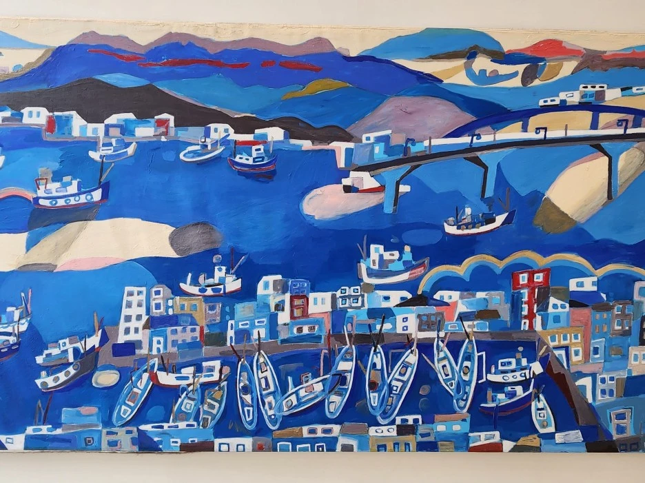 너무 멀리 걸려있던 인왕실의 <통영항> 작품이 내 눈앞으로 나아왔다. 인왕실의 작품보다 조금 작고 코발트블루는 조금 옅었는데 이 작품 그대로 더 가볍고 경쾌했다.