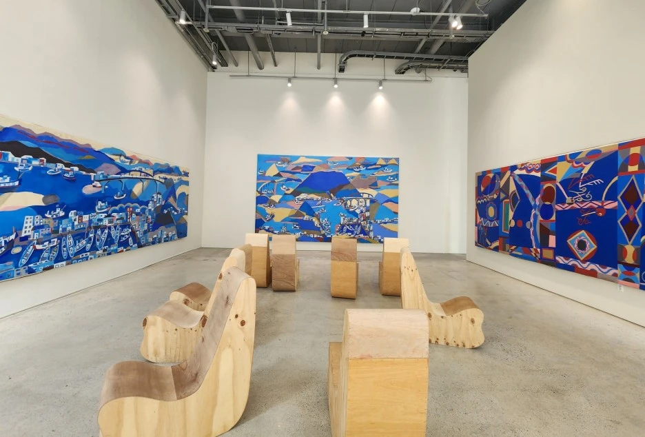 박대성 화백의 <코리아 판타지>와는 또 다른 느낌으로, 바다와 한국의 산수와 한국의 전통문양과 코발트 블루 등이 어우러진 서정적 대작이었다.