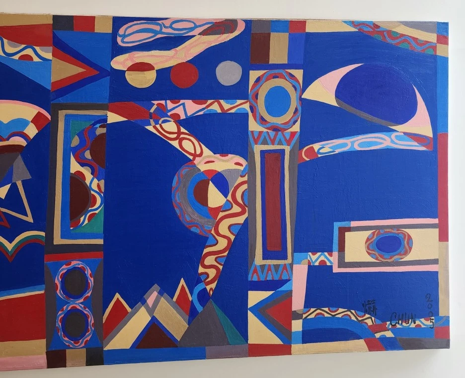 전혁림은 구상에서 반구상/반추상을 거쳐 완전 추상으로 나아갔는데 오른쪽은 완전추상 작품이다.