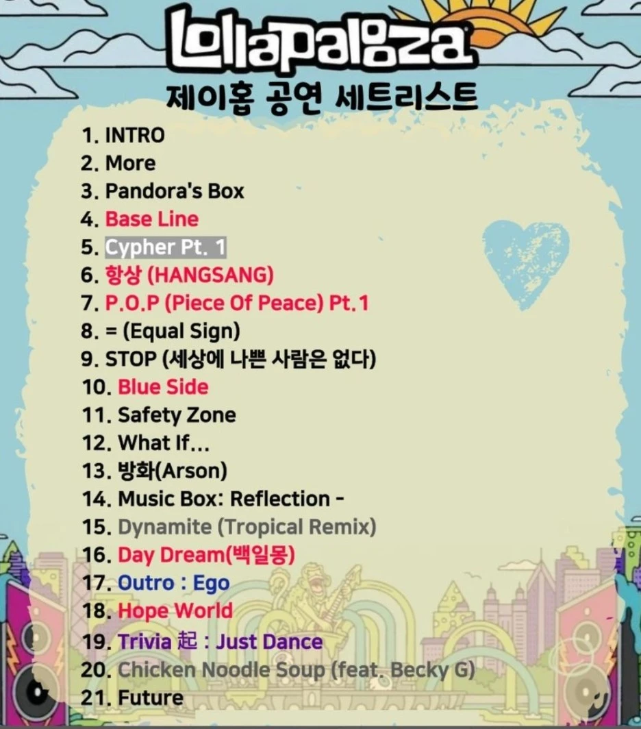 시카고 롤라팔루자 공연장엔 새벽부터 홉이의 공연을 보기 위해 장사진을 이뤘고, 시카고 시장은 제이홉의 공연이 기대된다는 트윗을 하고 나선 실제 제이홉 무대 바로 전에 10년 비전의 롤라팔루자 홍보를 하고 가고 롤라팔루자 설립자도 이때 무대에 올라와 스피치를 했다 (지금이 시청률, 집중률이 제일 높다는 걸 아는 것이지)