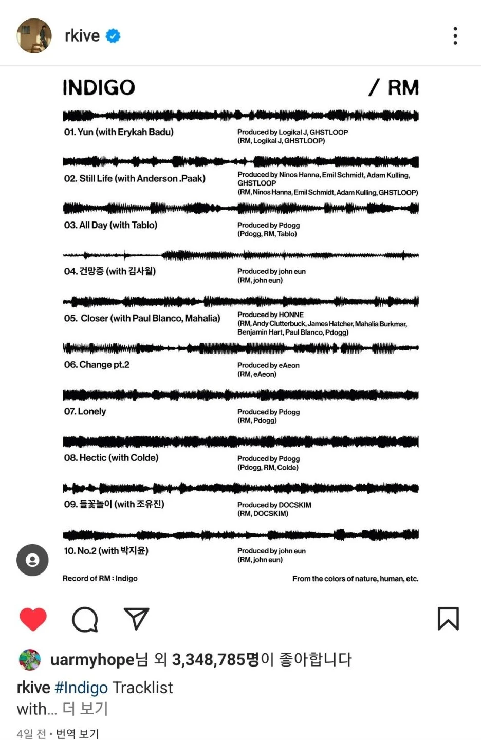 RM의 Indigo(인디고)앨범 "그냥 김남준이다"
