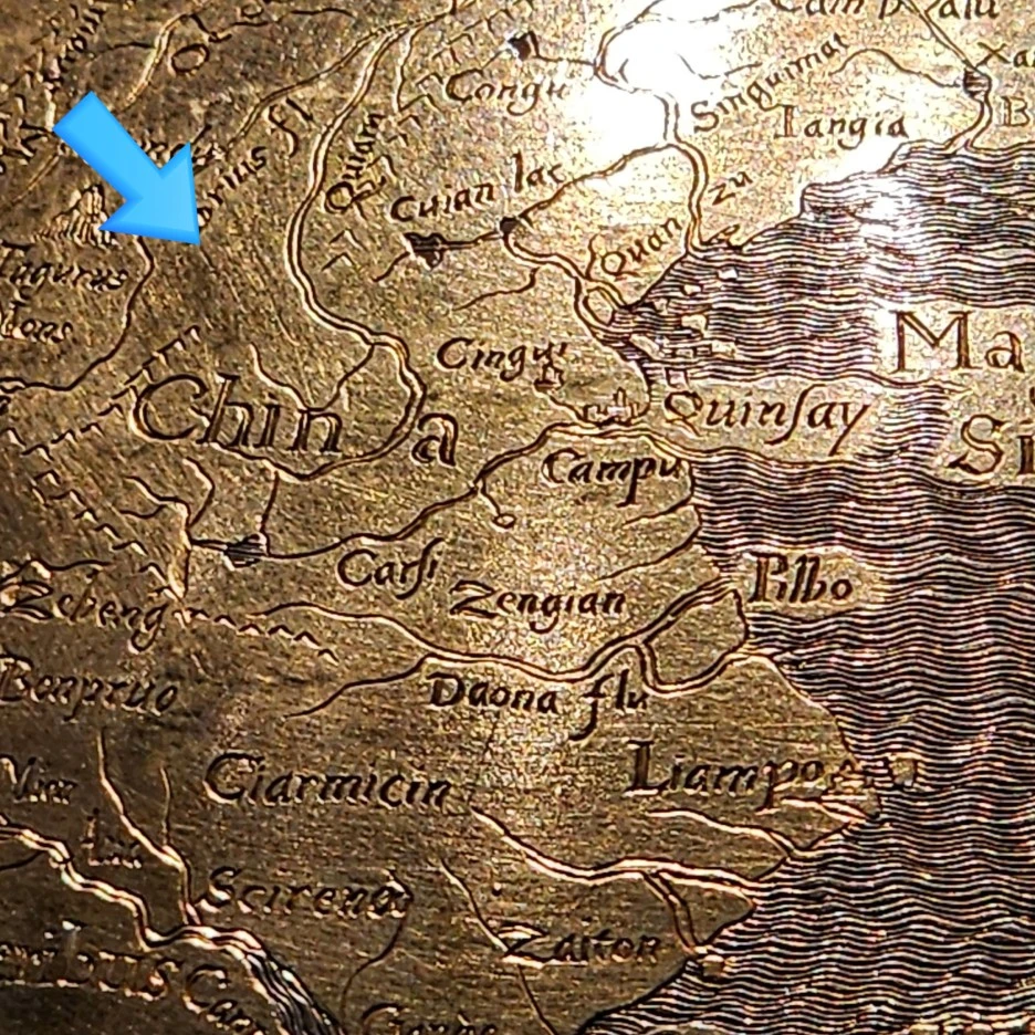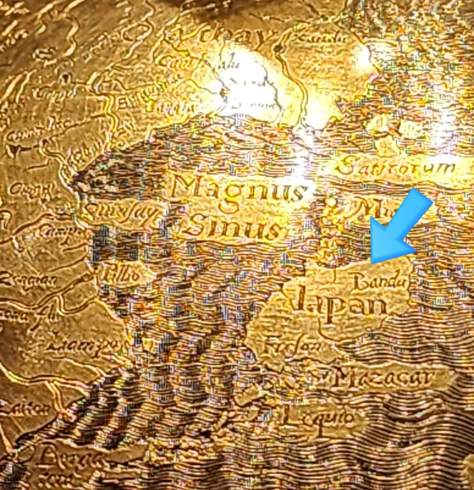 대한민국인 종특, 오래된 지도를 봤다하면 찾아보는 내 나라. 1590년이면 조선중기를 즈음인데 혹시나 했는데 역시나 없다. 중국은 그렇다 쳐, 일본도 당당히 세계지도의 한 축을 차지하고 있음은 아리다.