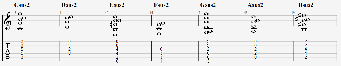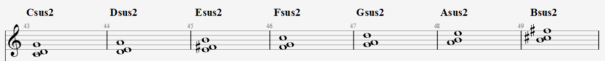 sus2 코드 구성음. sus4가 더 흔히 사용되기 때문에 이걸 나중에 첨부한 것은 아니고 그냥 올린 거다.