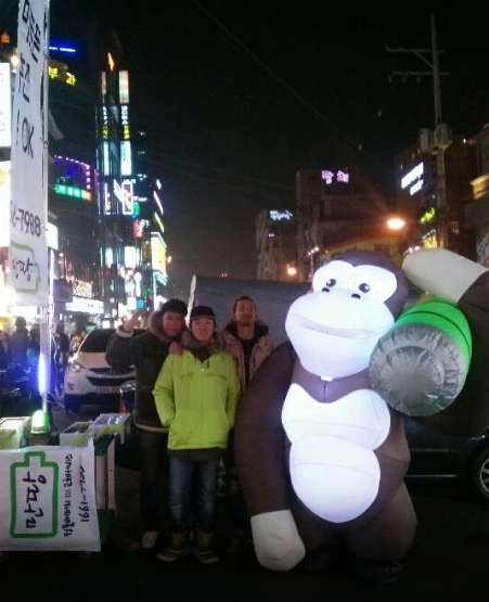 심지어 이목을 끌기 위해 사람이 직접 들어가야만 하는 150만원이나 하는 대형? 인형을 2개씩이나 주문 제작도 했다. 사람이 들어가야 하는 인형인데 무서운 형들? 두 명에 의해 친척 동생들은 인형 탈 알바의 희생양이 되었다. 인형이 너무 사람처럼 움직이고 신기한 나머지... (당연하지. 사람이 들어가 있는데) 발로 차 보는 취객들로 인해 첫날부터 맞아서 다치는 사고도 겪게 된다.
